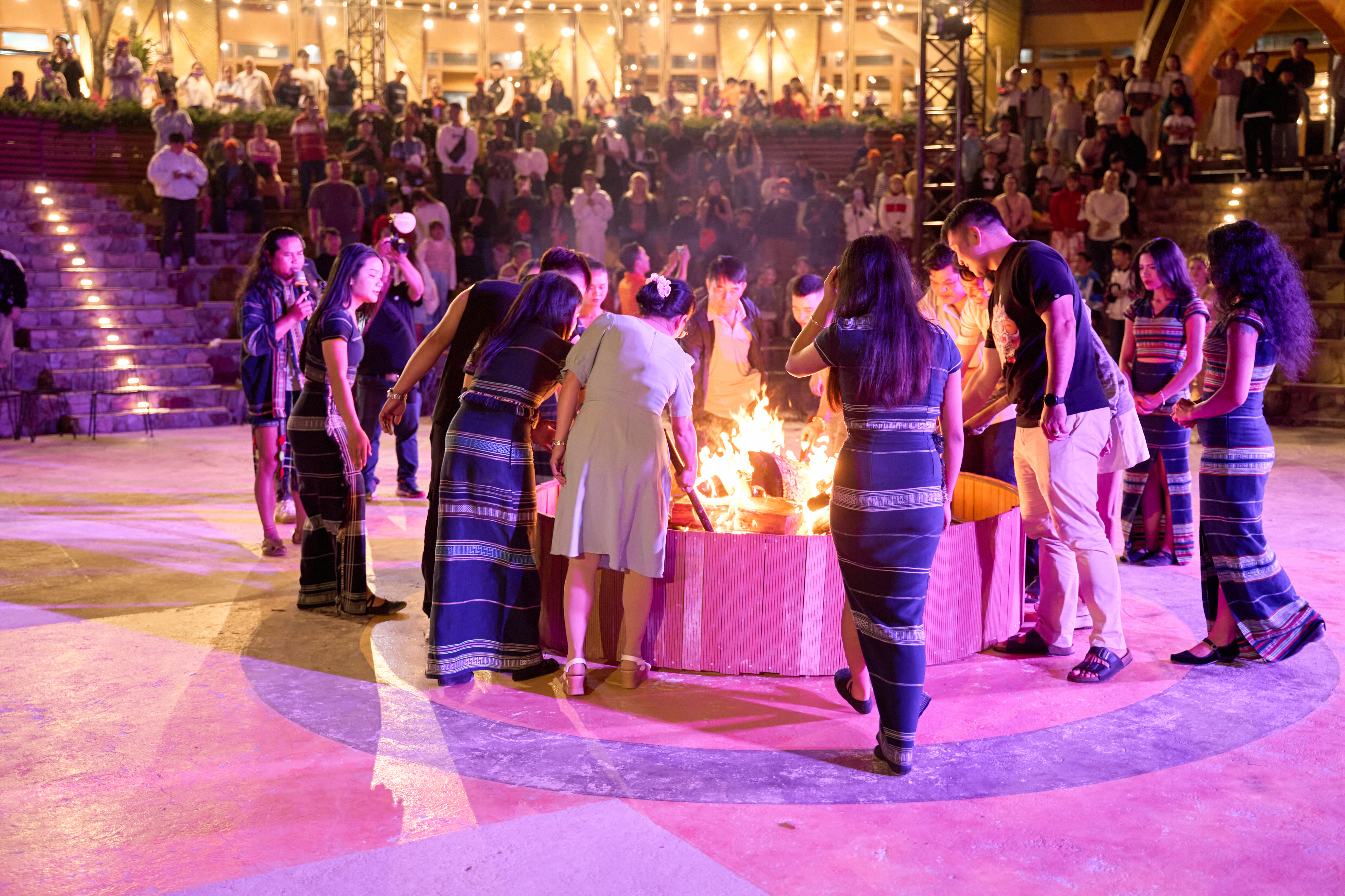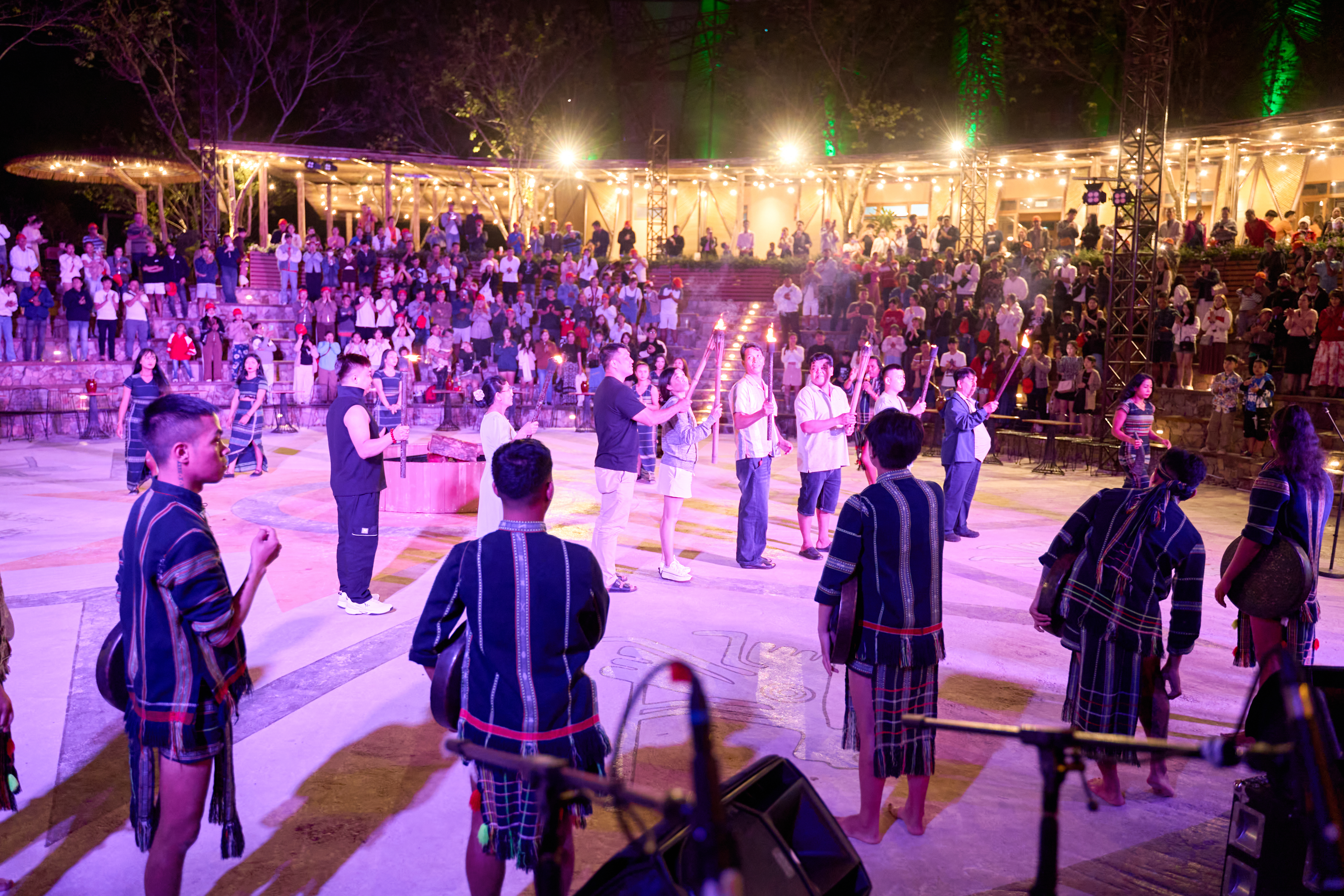 - Chứng kiến già làng nhóm lửa thiêng – biểu tượng của sự gắn kết, mở đầu cho đêm hội văn hóa đặc sắc.