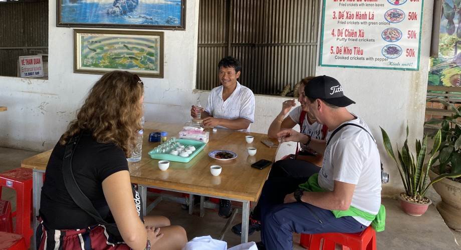Trang trại dế Thiện An là điểm đến thú vị và độc đáo. Tại đây, bạn sẽ được chủ trại hướng dẫn quy trình nuôi, chăm sóc và sinh sản dế. Ngoài ra, bạn còn có thể thưởng thức món ăn làm từ dế và tìm hiểu cách nấu rượu gạo truyền thống.
