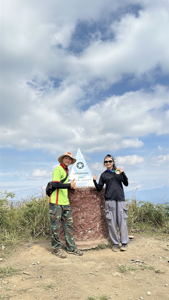 Đặt chân lên đỉnh Langbiang ở độ cao 2.167m, nghỉ ngơi và ngắm nhìn toàn cảnh thành phố Đà Lạt, hồ Suối Vàng và những dãy núi trùng điệp xung quanh. Tại đây, du khách được trao huy chương gỗ vinh danh chinh phục Trekking Langbiang Xanh và lưu giữ những khoảnh khắc đáng nhớ. Trước khi hạ sơn, đoàn cùng hướng dẫn viên thực hiện hoạt động thu gom rác, góp phần bảo vệ môi trường núi rừng.